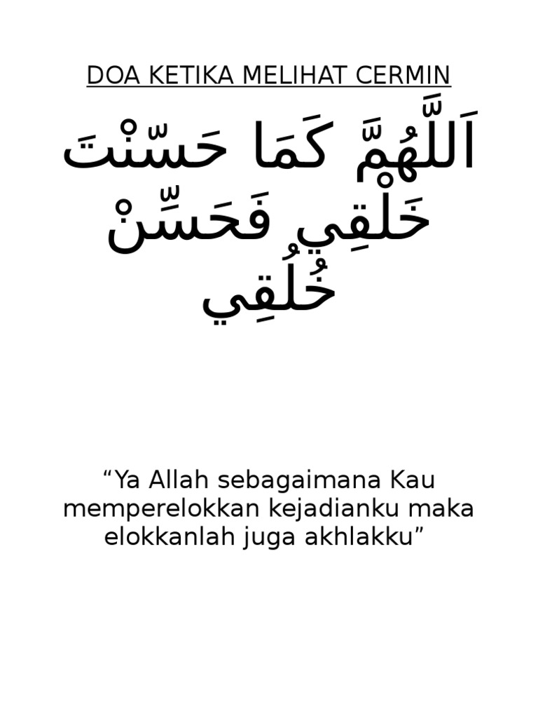 Doa Melihat Cermin / Tidak ada maksud lain selain hanya untuk melihat.. Nak tengok cermin pun ada doa. Doa sukar untuk menyelesaikan hutang yang ada (1). Doa ketika bercermin arab latin dan artinya. Ya allah ya tuhanku sebagaimana engkau telah memperelokkankan kejadianku , maka hiasilah budi pekertiku dengan akhlak yang baik. Selain untuk melihat apakah penampilan sudah rapi hanya saja tidak dijumpai keterangan bahwa beliau membaca doa itu ketika melihat cermin.